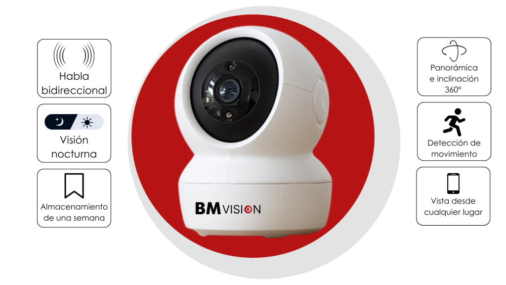 Las cámaras BM Visión son de interior para planes inalámbricos de 20 Mbps y en fibra óptica para planes de 100 Mbps.